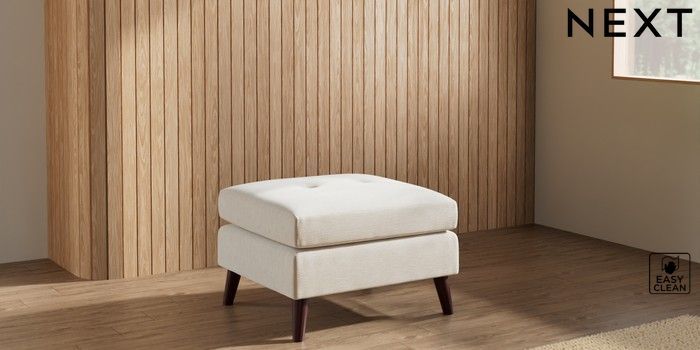 7.3.1 Buy Wilson Buttoned Back Footstool Fine Chenille Easy Clean Oyster Retro Tapered - Dark Brown from the Seasons online shop Click here to use our website with more accessibility support, for example screen readers
