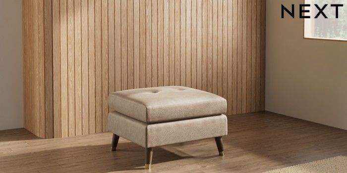 7.3.1 Buy Wilson Buttoned Back Footstool Luxe Chenille Mid Camel Beige Low Retro Tapered Metal Cap - Mid from the Seasons online shop Click here to use our website with more accessibility support, for example screen readers