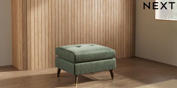 7.3.1 Buy Wilson Buttoned Back Footstool Luxe Chenille Mid Green Low Retro Tapered Metal Cap - Mid from the Seasons online shop Click here to use our website with more accessibility support, for example screen readers