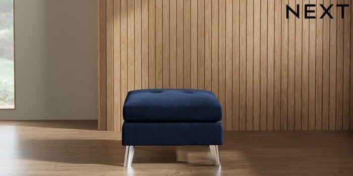 7.2.10 Buy Wilson Buttoned Back Footstool Luxe Chenille Navy Blue Metal Tapered - Chrome from the Seasons online shop Click here to use our website with more accessibility support, for example screen readers