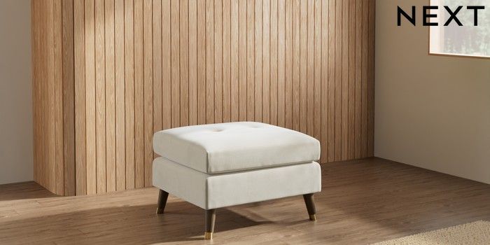 7.3.1 Buy Wilson Buttoned Back Footstool Luxe Chenille Oyster Low Retro Tapered Metal Cap - Mid from the Seasons online shop Click here to use our website with more accessibility support, for example screen readers