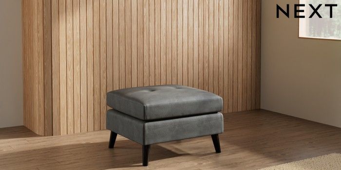 7.3.1 Buy Wilson Buttoned Back Footstool Monza Faux Leather Easy Clean Dark Grey Retro Tapered - Dark from the Seasons online shop Click here to use our website with more accessibility support, for example screen readers