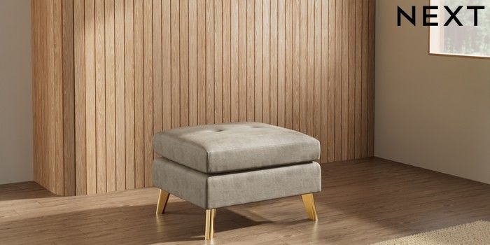 7.3.1 Buy Wilson Buttoned Back Footstool Monza Faux Leather Easy Clean Mink Brown Metal Tapered - Gold from the Seasons online shop