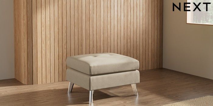 7.3.1 Buy Wilson Buttoned Back Footstool Natural Mix Light Natural Metal Tapered - Chrome from the Seasons online shop Click here to use our website with more accessibility support, for example screen readers