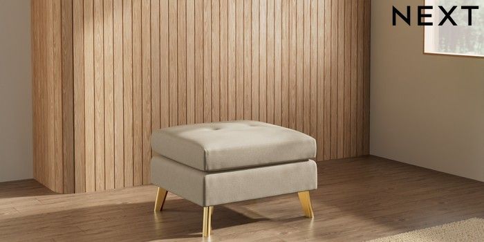 7.3.1 Buy Wilson Buttoned Back Footstool Natural Mix Light Natural Metal Tapered - Gold from the Seasons online shop Click here to use our website with more accessibility support, for example screen readers