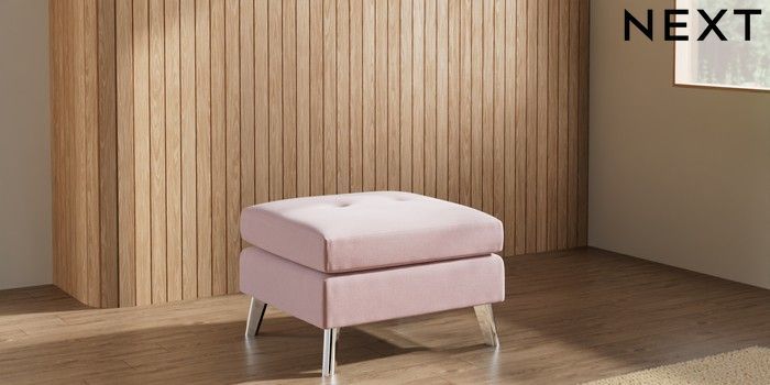 7.3.1 Buy Wilson Buttoned Back Footstool Natural Mix Light Rose Pink Metal Tapered - Chrome from the Seasons online shop Click here to use our website with more accessibility support, for example screen readers