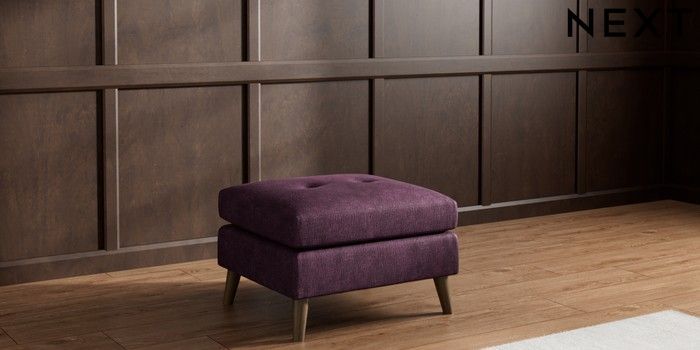 7.3.1 Buy Wilson Buttoned Back Footstool Plush Chenille Dark Plum Purple Retro Tapered - Mid from the Seasons online shop Click here to use our website with more accessibility support, for example screen readers