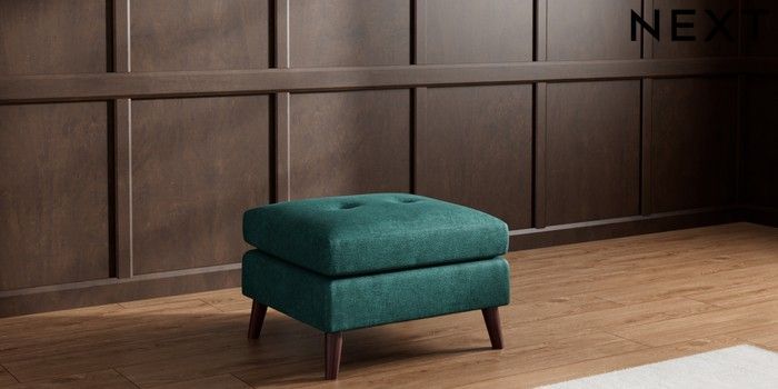 7.3.1 Buy Wilson Buttoned Back Footstool Plush Chenille Dark Teal Green Retro Tapered - Dark Brown from the Seasons online shop Click here to use our website with more accessibility support, for example screen readers