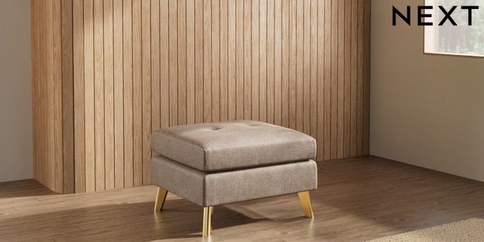 7.3.1 Buy Wilson Buttoned Back Footstool Plush Chenille Mid Natural Metal Tapered - Gold from the Seasons online shop Click here to use our website with more accessibility support, for example screen readers