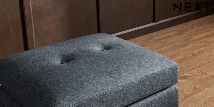 7.3.1 Buy Wilson Buttoned Back Footstool Plush Chenille Slate Blue Metal Tapered - Gold from the Seasons online shop Click here to use our website with more accessibility support, for example screen readers