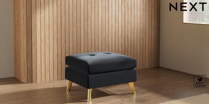 7.3.1 Buy Wilson Buttoned Back Footstool Plush Velvet Easy Clean Charcoal Grey Metal Tapered - Gold from the Seasons online shop Click here to use our website with more accessibility support, for example screen readers