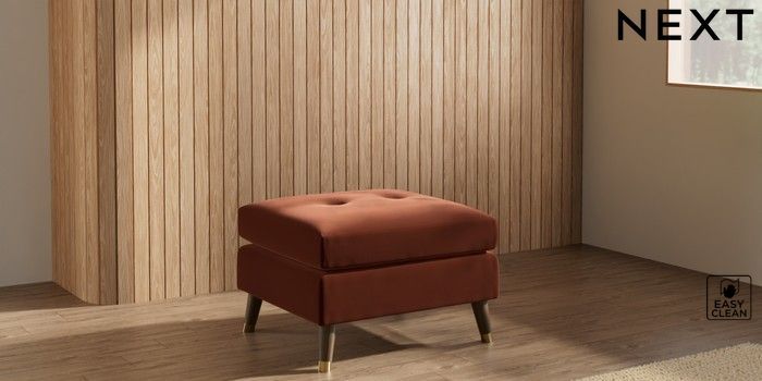 7.3.1 Buy Wilson Buttoned Back Footstool Plush Velvet Easy Clean Ginger Orange Low Retro Tapered Metal Cap - Mid from the Seasons online shop Click here to use our website with more accessibility support, for example screen readers