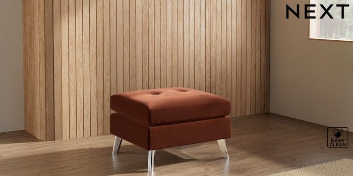 7.3.1 Buy Wilson Buttoned Back Footstool Plush Velvet Easy Clean Ginger Orange Metal Tapered - Chrome from the Seasons online shop Click here to use our website with more accessibility support, for example screen readers