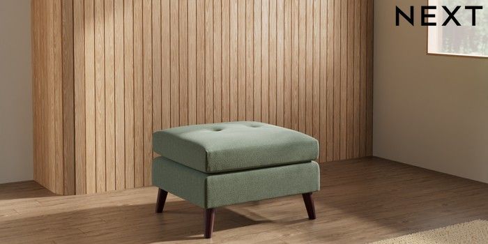 7.3.1 Buy Wilson Buttoned Back Footstool Relaxed Linen Look Dark Green Retro Tapered - Dark Brown from the Seasons online shop Click here to use our website with more accessibility support, for example screen readers