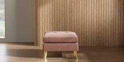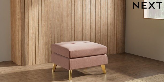 7.3.1 Buy Wilson Buttoned Back Footstool Relaxed Linen Look Light Rust Brown Metal Tapered - Gold from the Seasons online shop Click here to use our website with more accessibility support, for example screen readers