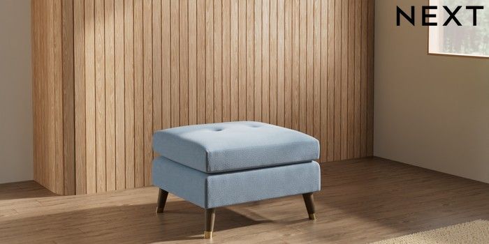 7.3.1 Buy Wilson Buttoned Back Footstool Relaxed Linen Look Mid Blue Low Retro Tapered Metal Cap - Mid from the Seasons online shop Click here to use our website with more accessibility support, for example screen readers