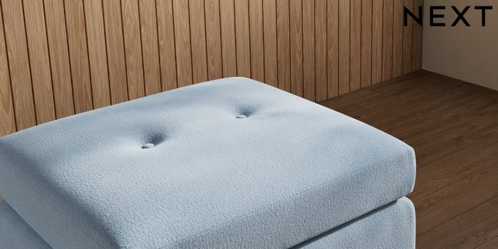 7.3.1 Buy Wilson Buttoned Back Footstool Relaxed Linen Look Mid Blue Retro Tapered - Dark Brown from the Seasons online shop Click here to use our website with more accessibility support, for example screen readers