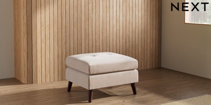 7.3.1 Buy Wilson Buttoned Back Footstool Relaxed Linen Look Mid Natural Retro Tapered - Dark Brown from the Seasons online shop Click here to use our website with more accessibility support, for example screen readers