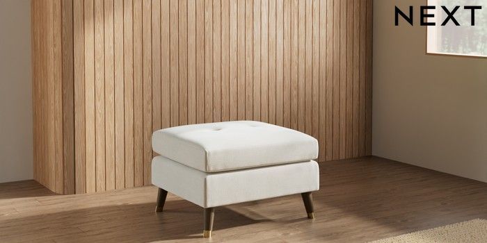 7.3.1 Buy Wilson Buttoned Back Footstool Relaxed Linen Look Oyster Low Retro Tapered Metal Cap - Mid from the Seasons online shop Click here to use our website with more accessibility support, for example screen readers