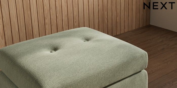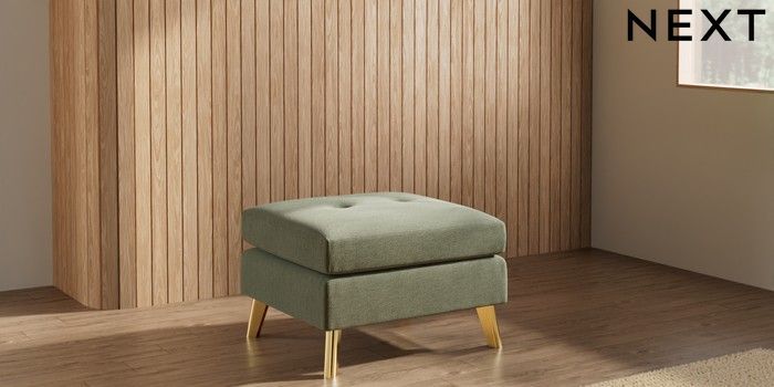 7.3.1 Buy Wilson Buttoned Back Footstool Ripple Chenille Mid Moss Green Metal Tapered - Gold from the Seasons online shop Click here to use our website with more accessibility support, for example screen readers