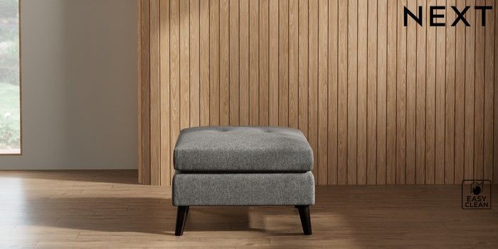7.3.1 Buy Wilson Buttoned Back Footstool Tweedy Blend Easy Clean Dark Grey Retro Tapered - Dark from the Seasons online shop Click here to use our website with more accessibility support, for example screen readers