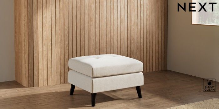 7.3.1 Buy Wilson Buttoned Back Footstool Tweedy Blend Easy Clean Oyster Retro Tapered - Dark from the Seasons online shop Click here to use our website with more accessibility support, for example screen readers