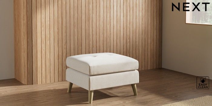 7.3.1 Buy Wilson Buttoned Back Footstool Tweedy Blend Easy Clean Oyster Retro Tapered - Light from the Seasons online shop Click here to use our website with more accessibility support, for example screen readers