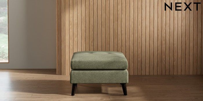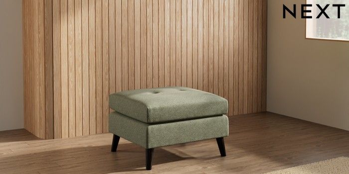 7.3.1 Buy Wilson Buttoned Back Footstool Tweedy Chenille Mid Moss Green Retro Tapered - Dark from the Seasons online shop Click here to use our website with more accessibility support, for example screen readers