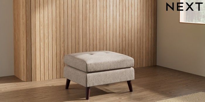 7.3.1 Buy Wilson Buttoned Back Footstool Tweedy Chenille Mid Natural Retro Tapered - Dark Brown from the Seasons online shop Click here to use our website with more accessibility support, for example screen readers