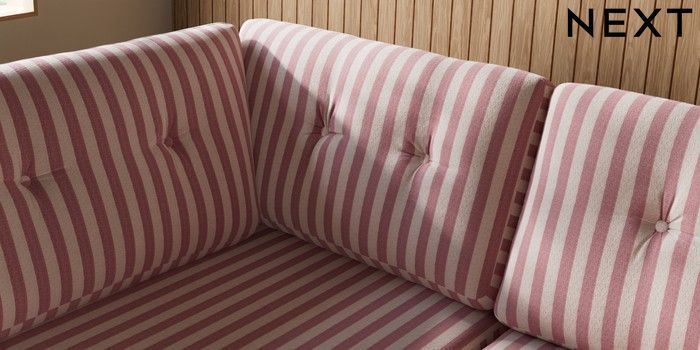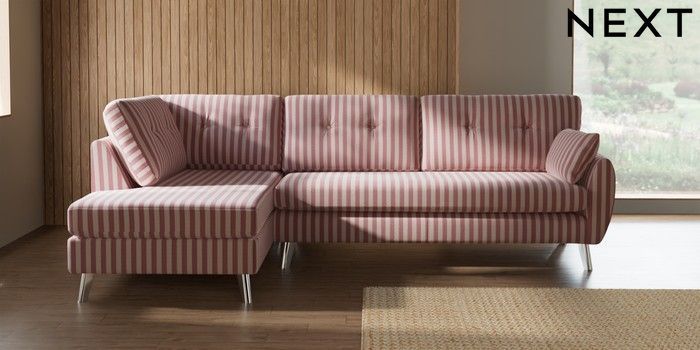 7.3.1 Buy Wilson Buttoned Back Large Corner Chaise - Left Hand Bold Chenille Stripe Dark Pink Metal Tapered - Chrome from the Seasons online shop Click here to use our website with more accessibility support, for example screen readers