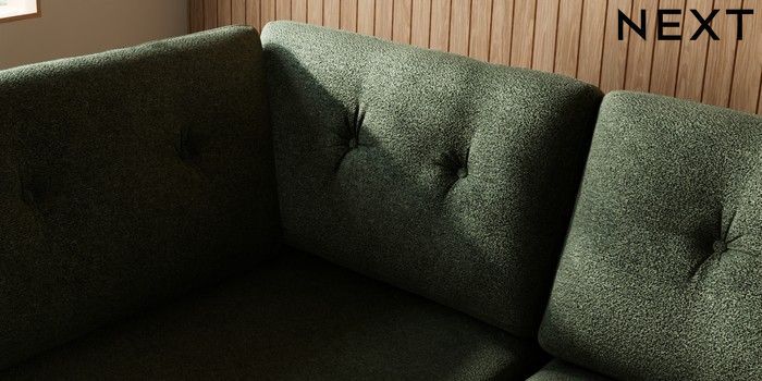 7.3.1 Buy Wilson Buttoned Back Large Corner Chaise - Left Hand Boucle Chenille Dark Moss Green Retro Tapered - Mid from the Seasons online shop Click here to use our website with more accessibility support, for example screen readers