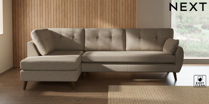 7.3.1 Buy Wilson Buttoned Back Large Corner Chaise - Left Hand Boucle Weave Easy Clean Dark Natural Retro Tapered - Mid from the Seasons online shop Click here to use our website with more accessibility support, for example screen readers