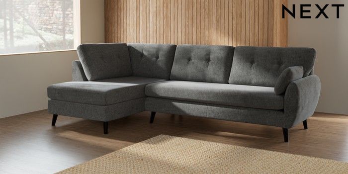7.2.10 Buy Wilson Buttoned Back Large Corner Chaise - Left Hand Chunky Chenille Dark Grey Retro Tapered - Dark from the Seasons online shop Click here to use our website with more accessibility support, for example screen readers