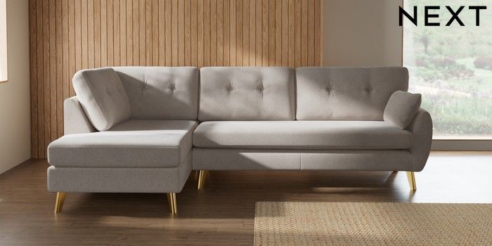 7.3.1 Buy Wilson Buttoned Back Large Corner Chaise - Left Hand Chunky Chenille Oyster Metal Tapered - Gold from the Seasons online shop Click here to use our website with more accessibility support, for example screen readers