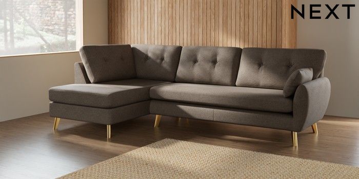 7.3.1 Buy Wilson Buttoned Back Large Corner Chaise - Left Hand Chunky Weave Dark Natural Metal Tapered - Gold from the Seasons online shop Click here to use our website with more accessibility support, for example screen readers