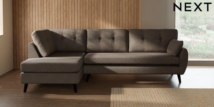7.3.1 Buy Wilson Buttoned Back Large Corner Chaise - Left Hand Chunky Weave Dark Natural Retro Tapered - Dark from the Seasons online shop Click here to use our website with more accessibility support, for example screen readers
