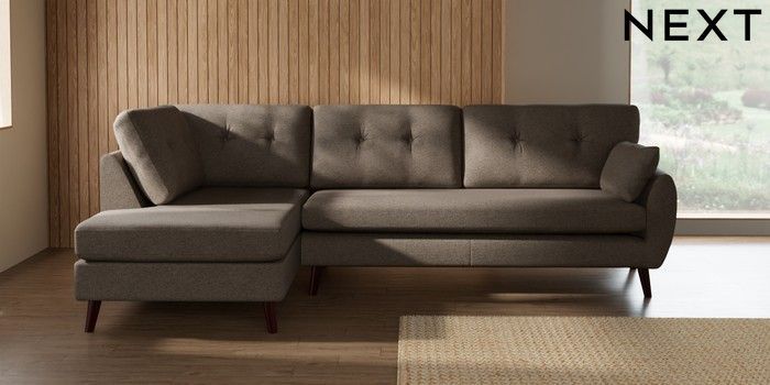 7.3.1 Buy Wilson Buttoned Back Large Corner Chaise - Left Hand Chunky Weave Dark Natural Retro Tapered - Dark Brown from the Seasons online shop Click here to use our website with more accessibility support, for example screen readers