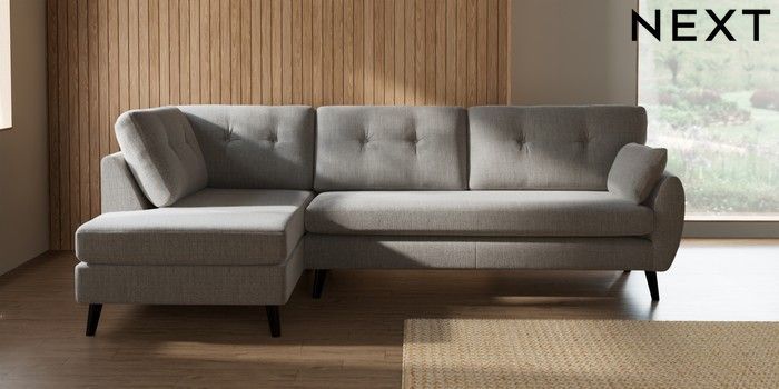 7.3.1 Buy Wilson Buttoned Back Large Corner Chaise - Left Hand Chunky Weave Dove Grey Retro Tapered - Dark from the Seasons online shop Click here to use our website with more accessibility support, for example screen readers