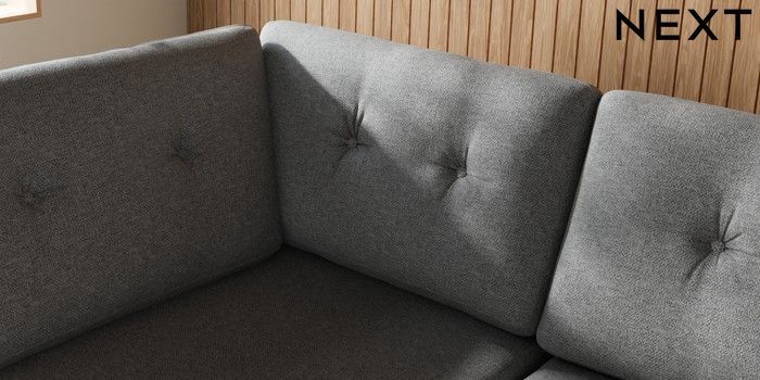 7.3.1 Buy Wilson Buttoned Back Large Corner Chaise - Left Hand Chunky Weave Mid Grey Metal Tapered - Gold from the Seasons online shop Click here to use our website with more accessibility support, for example screen readers