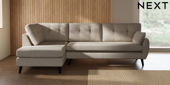 7.3.1 Buy Wilson Buttoned Back Large Corner Chaise - Left Hand Chunky Weave Mid Natural Retro Tapered - Dark from the Seasons online shop Click here to use our website with more accessibility support, for example screen readers