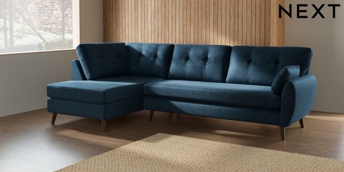 7.3.1 Buy Wilson Buttoned Back Large Corner Chaise - Left Hand Cotswold Chenille Dark Blue Retro Tapered - Mid from the Seasons online shop Click here to use our website with more accessibility support, for example screen readers