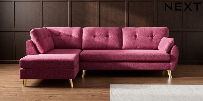 7.3.1 Buy Wilson Buttoned Back Large Corner Chaise - Left Hand Cotswold Chenille Dark Raspberry Pink Metal Tapered - Gold from the Seasons online shop Click here to use our website with more accessibility support, for example screen readers