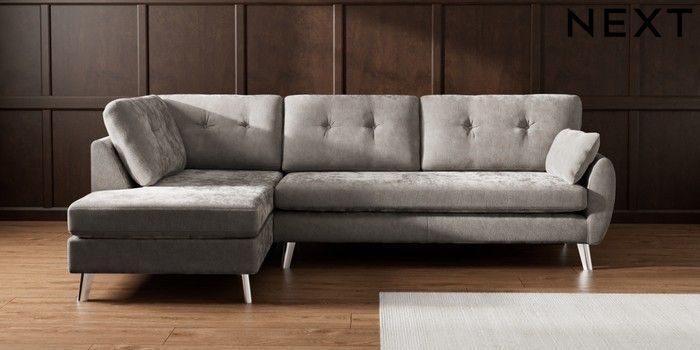7.3.1 Buy Wilson Buttoned Back Large Corner Chaise - Left Hand Distressed Velour French Grey Metal Tapered - Chrome from the Seasons online shop Click here to use our website with more accessibility support, for example screen readers