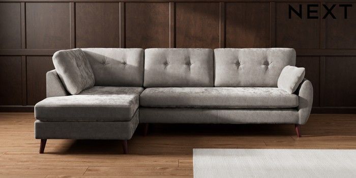 7.3.1 Buy Wilson Buttoned Back Large Corner Chaise - Left Hand Distressed Velour French Grey Retro Tapered - Dark Brown from the Seasons online shop Click here to use our website with more accessibility support, for example screen readers