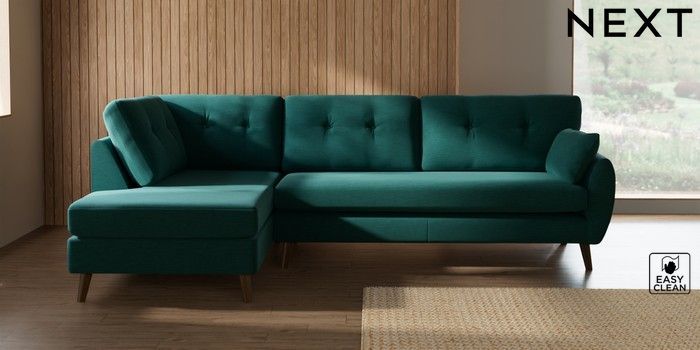 7.3.1 Buy Wilson Buttoned Back Large Corner Chaise - Left Hand Fine Chenille Easy Clean Dark Juniper Green Retro Tapered - Mid from the Seasons online shop Click here to use our website with more accessibility support, for example screen readers