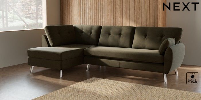 7.3.1 Buy Wilson Buttoned Back Large Corner Chaise - Left Hand Fine Chenille Easy Clean Dark Moss Green Metal Tapered - Chrome from the Seasons online shop Click here to use our website with more accessibility support, for example screen readers