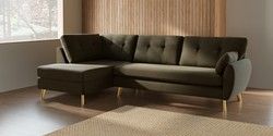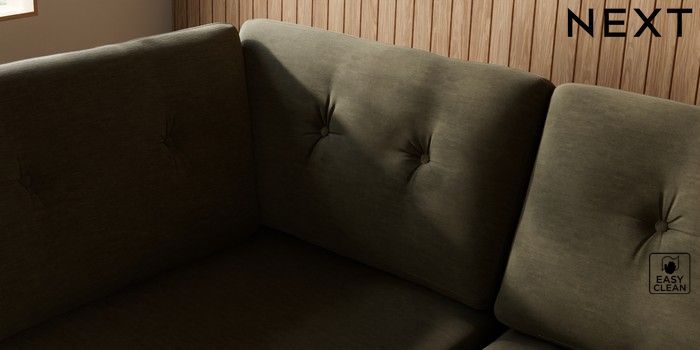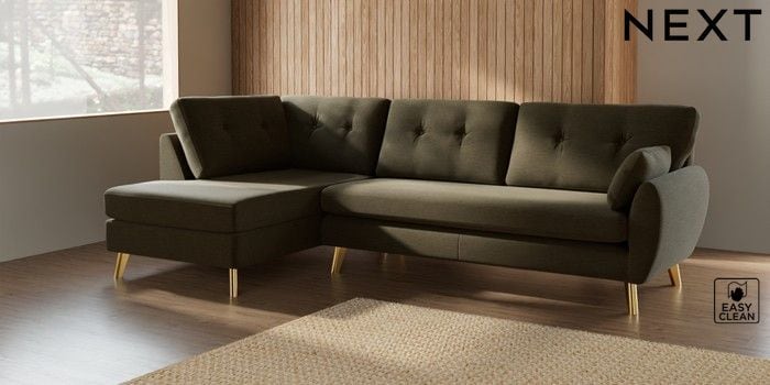 7.3.1 Buy Wilson Buttoned Back Large Corner Chaise - Left Hand Fine Chenille Easy Clean Dark Moss Green Metal Tapered - Gold from the Seasons online shop Click here to use our website with more accessibility support, for example screen readers