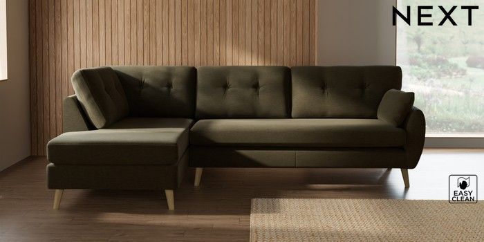 7.3.1 Buy Wilson Buttoned Back Large Corner Chaise - Left Hand Fine Chenille Easy Clean Dark Moss Green Retro Tapered - Light from the Seasons online shop Click here to use our website with more accessibility support, for example screen readers