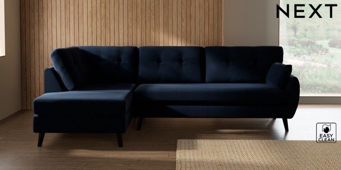 7.3.1 Buy Wilson Buttoned Back Large Corner Chaise - Left Hand Fine Chenille Easy Clean Dark Navy Blue Retro Tapered - Dark from the Seasons online shop Click here to use our website with more accessibility support, for example screen readers
