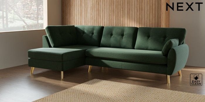 7.3.1 Buy Wilson Buttoned Back Large Corner Chaise - Left Hand Fine Chenille Easy Clean Mid Khaki Green Metal Tapered - Gold from the Seasons online shop Click here to use our website with more accessibility support, for example screen readers